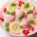 This Pink Strawberry Sherbet Punch is a refreshing and vibrant party drink perfect for gatherings. Combining the creamy sweetness of strawberry sherbet with the fizzy lemon-lime soda and a medley of fruit juices, this punch offers a delightful balance of tart and sweet flavors. Garnished with fresh strawberries, lemon slices, and basil, it’s as visually appealing as it is delicious.