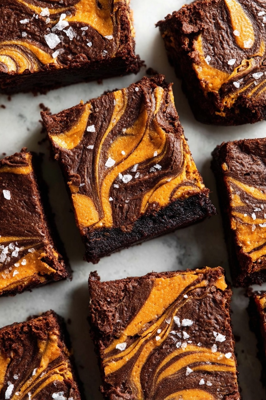 These Pumpkin Brownies combine the rich, fudgy texture of classic brownies with the warm, spiced flavor of pumpkin cheesecake swirled throughout. Perfect for fall gatherings or a cozy treat, this recipe uses a store-bought brownie mix enhanced with chocolate chips and a creamy pumpkin layer spiced with pumpkin pie spices and maple syrup. Finished with flakey sea salt, these brownies deliver a delightful balance of sweet, savory, and spice in every bite.