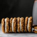 Using your favorite frosting tool—a small offset knife, spatula, or piping bag—add a generous dollop on the bottom side of one cookie, then sandwich with another cookie on top. Press gently, and there you have it: a dreamy pumpkin oatmeal cream pie you’ll want to hide from everyone.