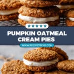These Pumpkin Oatmeal Cream Pies feature chewy pumpkin oatmeal cookies sandwiched with a luscious maple brown butter cream cheese frosting. The cookies are made with browned butter for a rich, nutty flavor and chai spice blend for a warm, aromatic touch. The frosting combines brown butter, cream cheese, and hints of maple and cinnamon, making these pies a perfect seasonal treat.