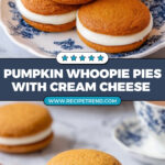 These Pumpkin Whoopie Pies are soft, cake-like cookies flavored with warm spices and pumpkin puree, sandwiched with a creamy, tangy cream cheese frosting. Perfect for fall or any time you want a cozy, sweet treat that’s surprisingly simple to make.