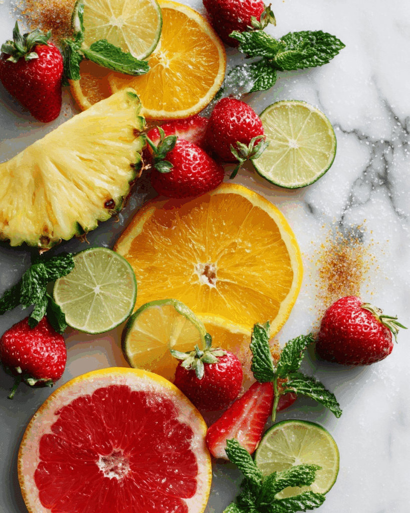 • Sliced Fresh Fruit (Strawberries, Oranges, Pineapple, Limes): These aren’t just for looks—they infuse the punch with extra flavor.