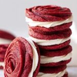 Delightfully charming Red Velvet Rose Cookies are soft, flavorful treats shaped like delicate rosettes. Made with classic red velvet ingredients and piped into elegant rose shapes, these cookies are perfect for special occasions or as a unique dessert. They are finished with a luscious marshmallow buttercream sandwiched between two cookies for an irresistible bite.