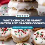 Delightfully crispy and creamy Ritz Cracker Christmas Cookies coated in smooth white chocolate and topped with festive sprinkles and flaky sea salt. These easy-to-make sandwich cookies combine crunchy Ritz crackers with creamy peanut butter, dipped in melted Ghirardelli white chocolate wafers for a perfect holiday treat that is both sweet and salty.