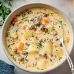 I love making this sausage potato soup my own based on what’s in the fridge or the mood we’re in. You should definitely feel free to mix things up—you can easily make it your signature cozy bowl.