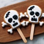 Delightfully spooky and fun, these Skull and Crossbones Cookie Pops are perfect for Halloween or pirate-themed parties. Made from a classic sugar cookie dough and decorated with white and black icing, these cookie pops combine festive creativity with delicious homemade flavor.