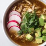 - Season and serve: Taste the posole and adjust seasoning if needed. Serve hot, garnished with sliced radishes, fresh cilantro sprigs, lime wedges, and avocado cubes for a fresh and creamy contrast.