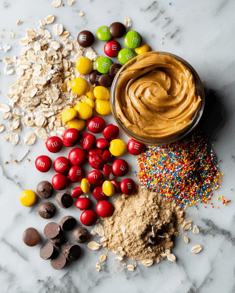 - M&M type candies: Great for that colorful crunch and to up the fun factor.