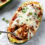 Leftover spaghetti squash lasagna boats keep beautifully in an airtight container in the fridge for up to 3 days. I find that the flavors deepen overnight, making the next day even more delicious. Just be sure to cover your squash boats tightly to avoid drying out the shells.