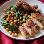 A vibrant and healthy vegetarian dish featuring spicy chickpeas cooked with fresh tomatoes and spinach. This quick and easy skillet recipe is packed with flavor from cumin, oregano, turmeric, and a hint of crushed red pepper, making it a perfect nutritious meal for any day of the week.
