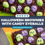 These Spooky Halloween Brownies are a fun and festive treat perfect for autumn celebrations. Made with Betty Crocker Triple Chunk Brownie Mix, these brownies are baked to a rich, fudgy perfection and then decorated with vibrant neon green and purple vanilla frosting mounds, topped with creepy candy eyeballs to create a hauntingly delightful dessert for Halloween parties.