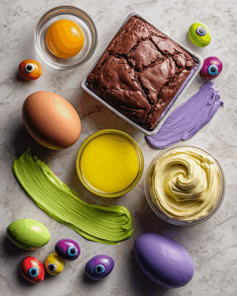 The magic of this Spooky Halloween Brownies Recipe is how simple ingredients come together for a jaw-dropping dessert. You’ll mostly rely on store-bought goodness — brownie mix and ready frosting — which cuts down prep time and keeps it foolproof. Just a few additions bring it all to life.