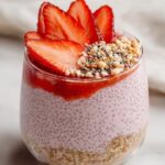 This refreshing Strawberry Crumble Chia Pudding is a perfect blend of creamy plant-based yogurt, chia seeds, and vibrant strawberry flavors topped with a crunchy almond date crumble. Naturally sweetened with maple syrup and infused with vanilla, this no-cook recipe makes a delightful, healthy breakfast or snack that’s easy to prepare and tailored to your sweetness preference.