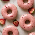 - Glaze Donuts: Dip the cooled donuts into the strawberry glaze and place them back onto the cooling rack. Allow the glaze to set and dry before serving.