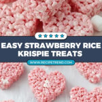 Delightfully easy and festive, these Strawberry Rice Krispie Treat Hearts combine classic crispy marshmallow cereal with a vibrant twist of freeze-dried strawberry powder. Perfect for any celebration or as a sweet snack, these treats are quick to make and irresistibly delicious with pockets of gooey marshmallow and a fruity strawberry flavor.