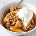 I keep leftover apple crisp covered tightly in the fridge for up to 3 days. When eating leftovers, the apples soak up the topping’s buttery goodness overnight, making it even more tasty but sometimes the topping loses a bit of its crunch.