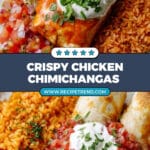 These Chicken Chimichangas are crispy, cheesy, and packed with flavorful shredded chicken seasoned with chili powder, cumin, and paprika, combined with salsa verde and melted cheeses. Wrapped in large flour tortillas and pan-fried to golden perfection, they make a satisfying Mexican-inspired meal served with fresh guacamole, sour cream, salsa, and cilantro.