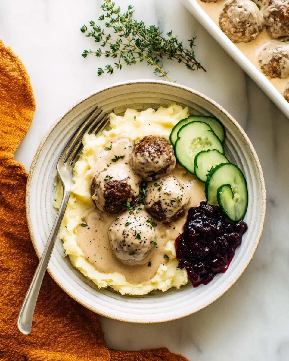 Mashed potatoes are an absolute must—creamy and buttery, they soak up all that amazing gravy. I also love pairing these meatballs with a crisp cucumber salad or lightly pickled veggies to add a refreshing crunch. And don’t forget the lingonberry sauce on the side for that classic Swedish touch!