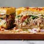 This Trader Joe’s Sun-Dried Tomato Focaccia Turkey Sandwich features a flavorful loaf filled with deli turkey, juicy tomato slices, fresh greens, and a creamy pesto mayo spread. Toasted until golden, this sandwich is an easy yet gourmet meal perfect for lunch or a light dinner.