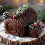 This Yule log shines purely on its own, but if you want to serve alongside, try a simple berry compote or some lightly whipped coconut cream for contrast. For a party spread, offering a fruit platter with citrus segments helps balance the chocolate richness nicely.