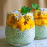 - Add Final Toppings: Finish by placing a few chopped mango pieces and fresh mint leaves on top. Sprinkle coconut flakes and some extra chia seeds for added texture and flavor.