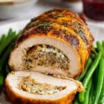 - This recipe includes stuffing in the center of the roast for added flavor but can easily be made without it if preferred.