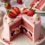 - Decorate the cake: Spread or pipe the remaining frosting over the top and around the sides of the cake. Garnish with fresh strawberries or your preferred fresh berries for a beautiful finish.