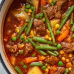 I’ve frozen this vegetable beef stew multiple times with great success. Let it cool completely, then portion it out into freezer-safe containers. It can be frozen for up to 3 months. When you’re ready, thaw it overnight in the fridge before reheating gently on the stove to preserve the texture of the veggies and beef.