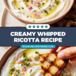 This Whipped Ricotta pairs beautifully with a crisp green salad or a vibrant roasted vegetable platter. When I serve it at parties, I usually add a charcuterie board with cured meats and olives alongside — it complements the creamy, fresh flavors wonderfully without overpowering them.